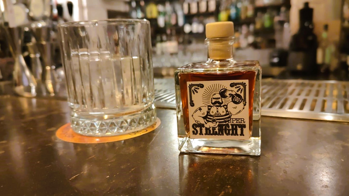 Illustration for Leonardo Giorgini & Cosimo Cisternino Strong Man drinkfor Paragon Lounge Bar 700 Circus Themed Mixology Drink List.