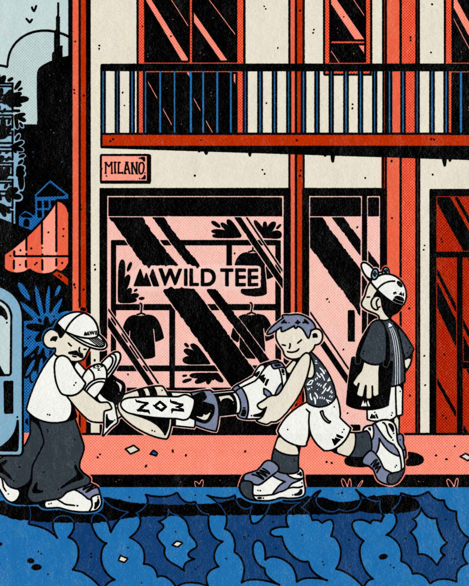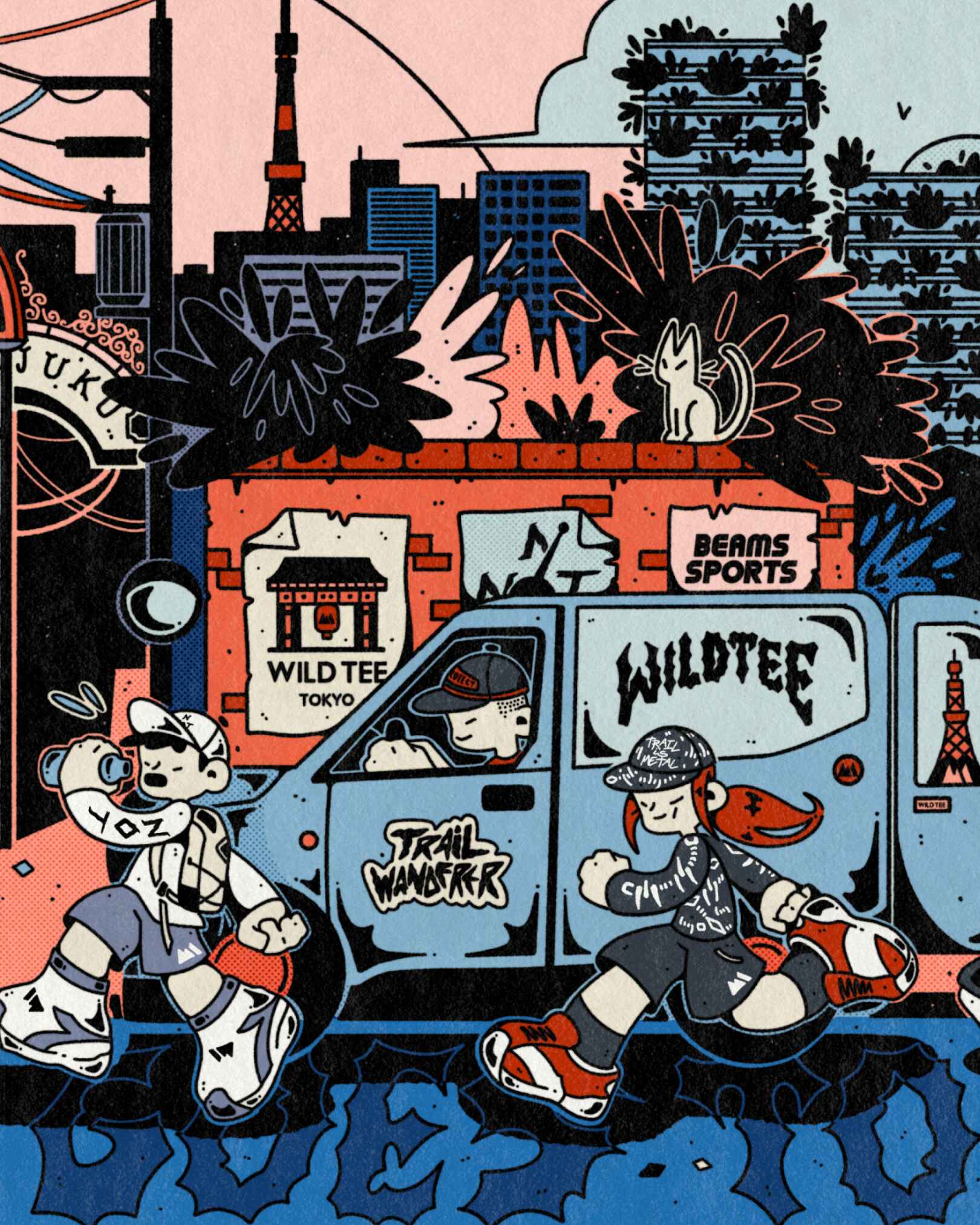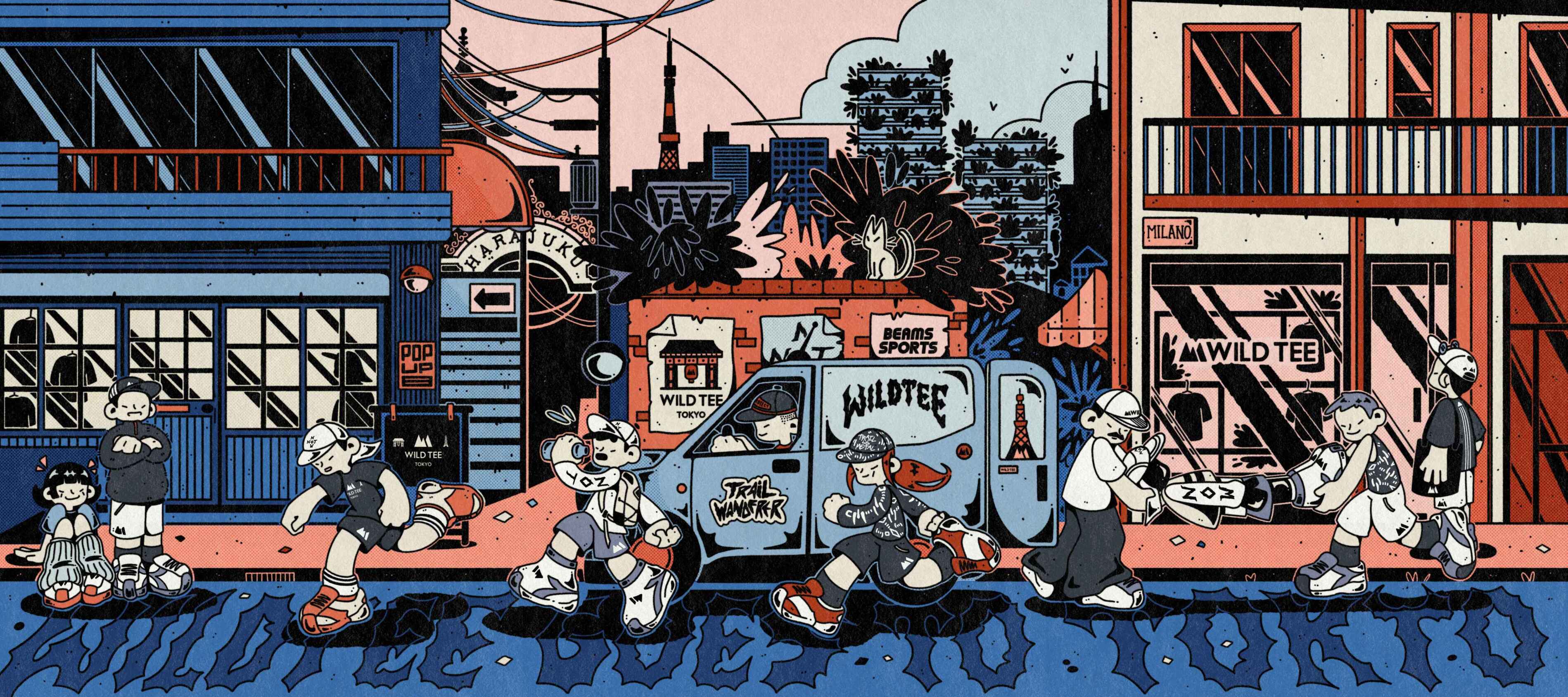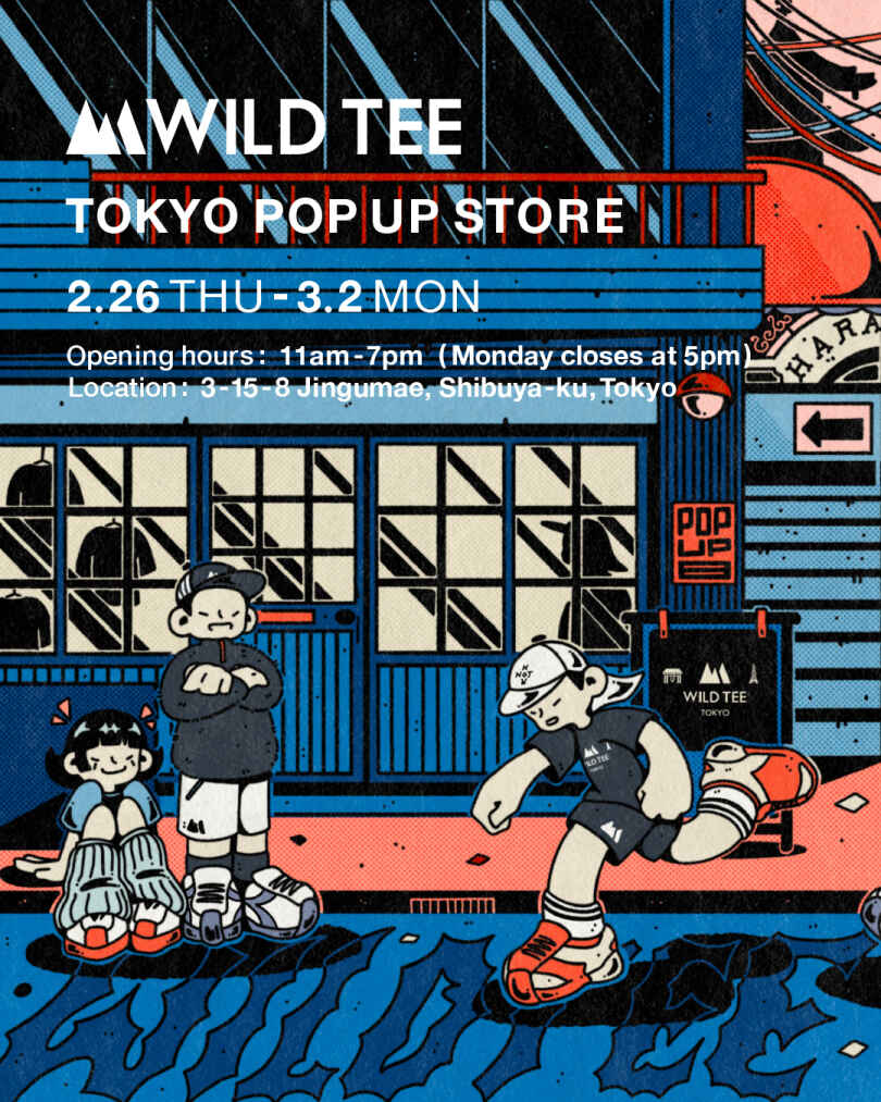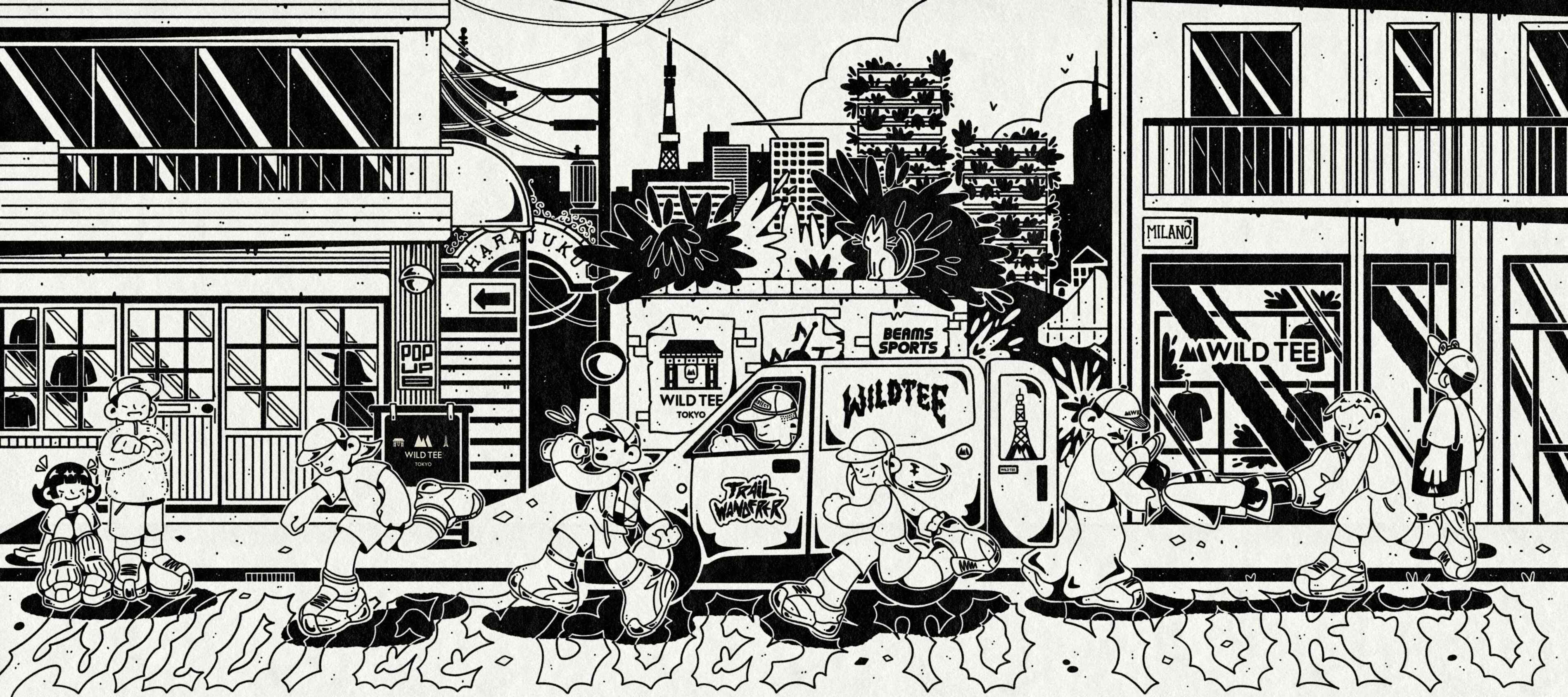 Illustration to celebrate and promote the opening of Wild Tee pop-up store in Harajuku, Tokyo sponsored by Beams Sport.